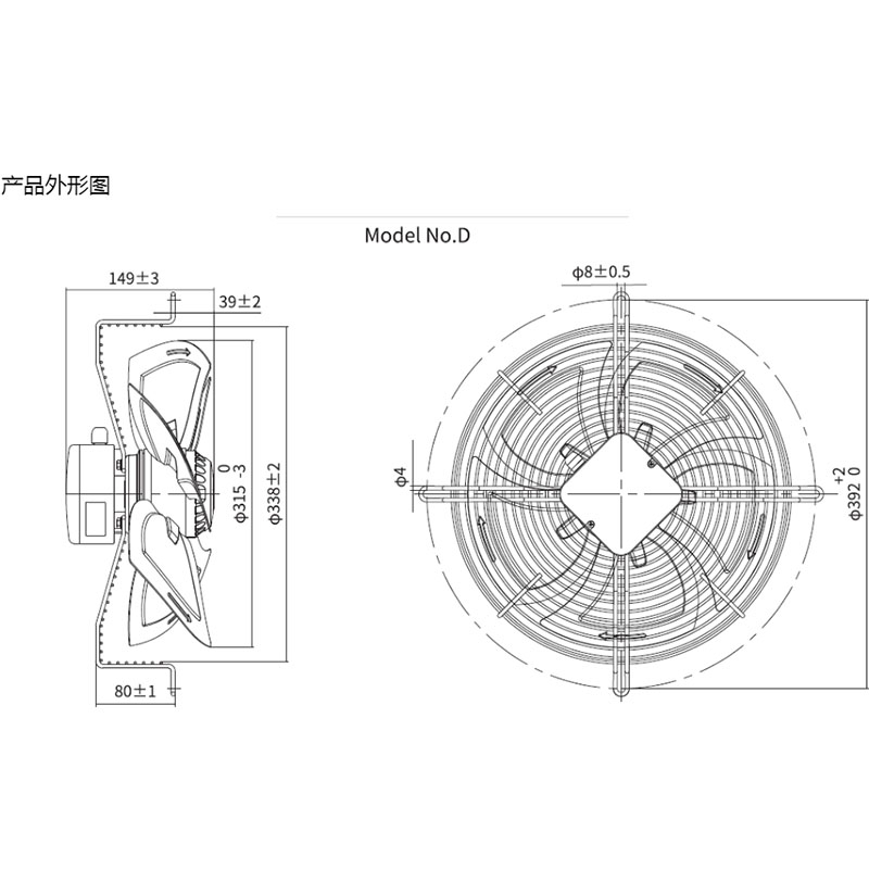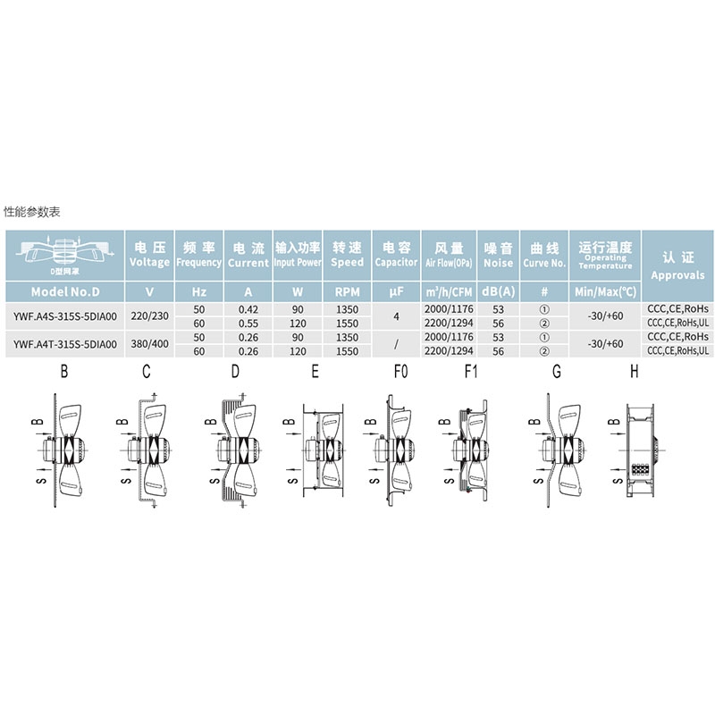 YWF.A4S-315S-5DIA00外轉子網罩式風扇可定制平網吸風